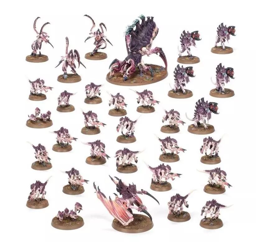 - 20x Termagants: Scuttling hordes of simple Tyranid creatures, armed with weapons that project living ammunition