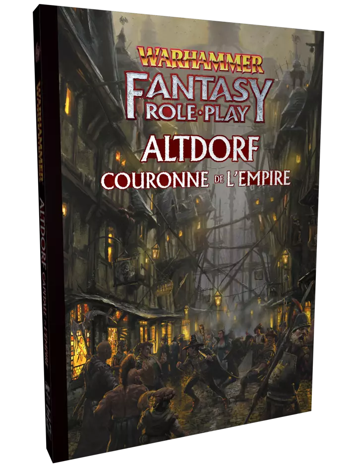 Altdorf : Couronne de l’Empire est un guide de 224 pages. Se dressant à la confluence de deux des plus grands cours d’eau de l’Empire, la cité est un centre de pouvoir pour le gouvernement, la religion, la magie et l’armée. Chaque quartier de cette ville tentaculaire est soigneusement décrit, proposant une grande variété de lieux, d’accroches de scénarios et de PNJ. Une carte magnifiquement illustrée, offrant une version pour le Meneur de jeu et une autre pour les joueurs, mettant en valeur tous les détails. Que les personnages explorent la Rue aux Cent Tavernes, s’impliquent dans les intrigues du palais impérial, cherchent à renverser l’ordre établi aux côtés des factions révolutionnaires d’Altdorf ou désirent dominer la pègre de la ville en ralliant les gangs rivaux de débardeurs, vous avez absolument besoin de cet ouvrage.