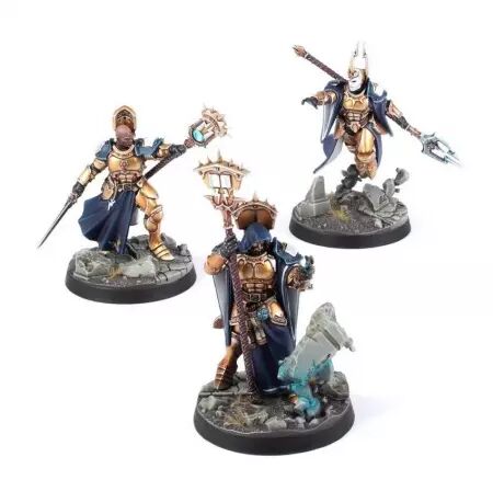 - La bande du Cénacle de l'Orage de Domitan complète. Groupe de mages de bataille Éternels de l'Orage menés par Domitan, ces Chevaliers-Arcanum sont individuellement de puissants guerriers. Avec trois figurines à emboîter moulées dans un plastique bleu riche accompagnées de cartes de combattant et d'une pile de Rivaux préconstruite, vous serez prêt à jouer en un rien de temps