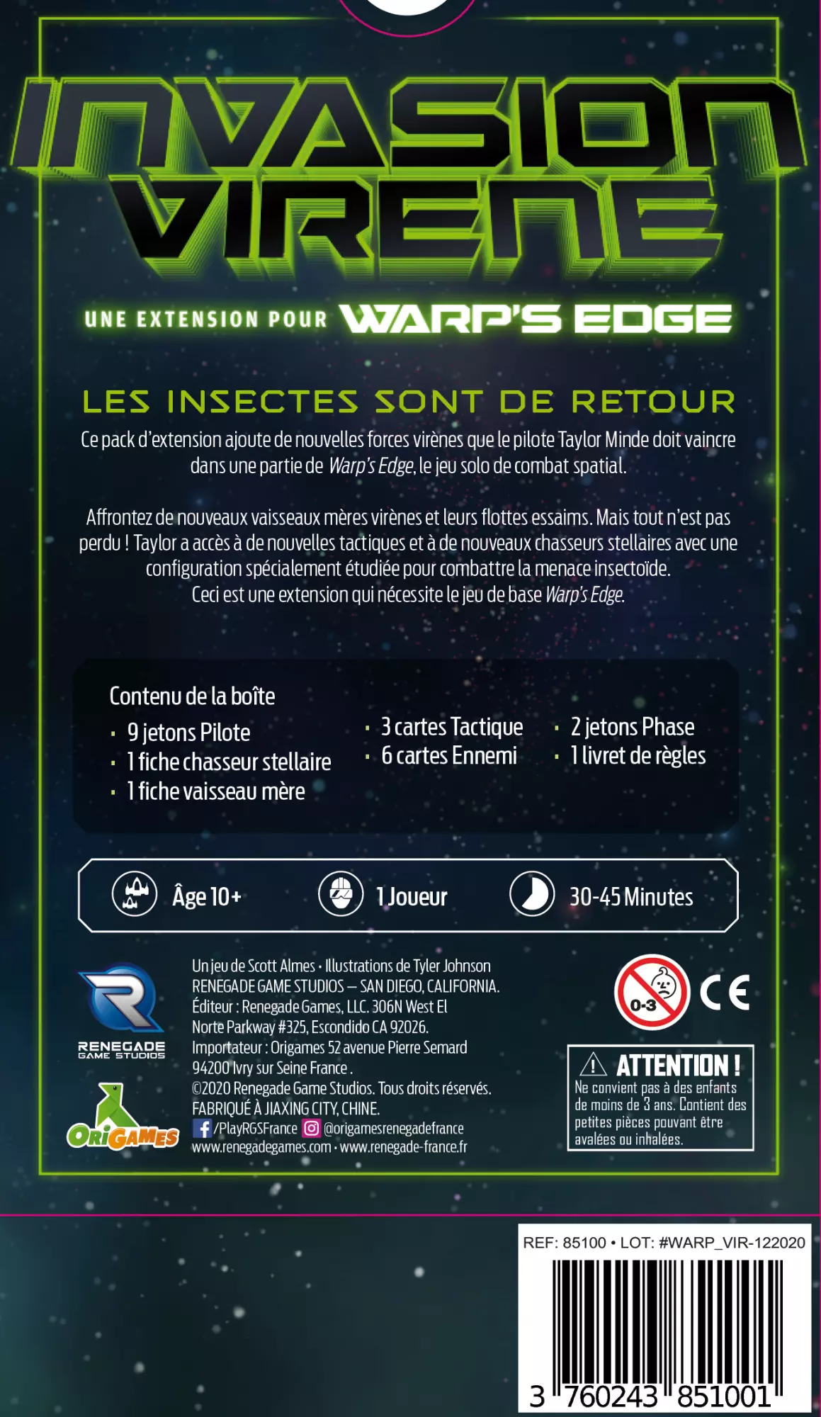 Réf. : JDPRGS038 Invasion Virene, une extension pour le jeu solo Warp's Edge !