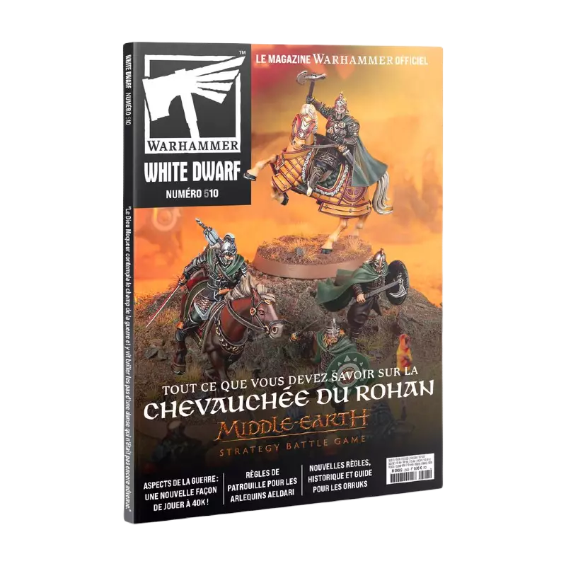 Chaque exemplaire de White Dwarf 510 s'accompagne d'un encart en carton comprenant six Cartes de Héros pour Middle Earth™ Strategy Battle Game, dix Cartes de Stratagème pour Warhammer 40,000, et une carte détachable qui présente les scénarios du mois pour Warhammer Age of Sigmar et Warhammer 40,000.