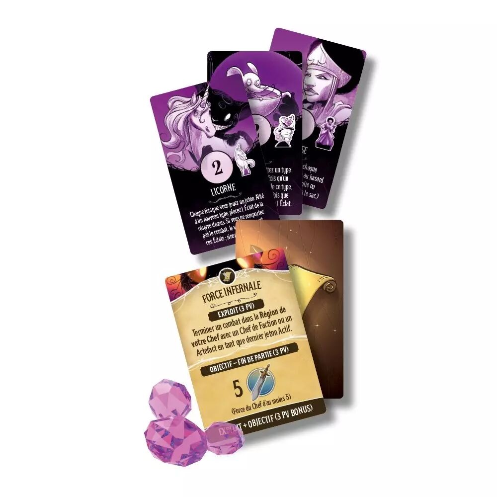 L’extension Folie éclatante propose un jeu complet de nouvelles cartes Habitants du Pays des Merveilles qui mettent en valeur les Éclats en tant que ressource, de nouveaux types de quêtes qui pousseront votre stratégie dans de nouvelles directions, et une récompense pour la bataille de départ qui incite à gagner dans la première région de bataille.