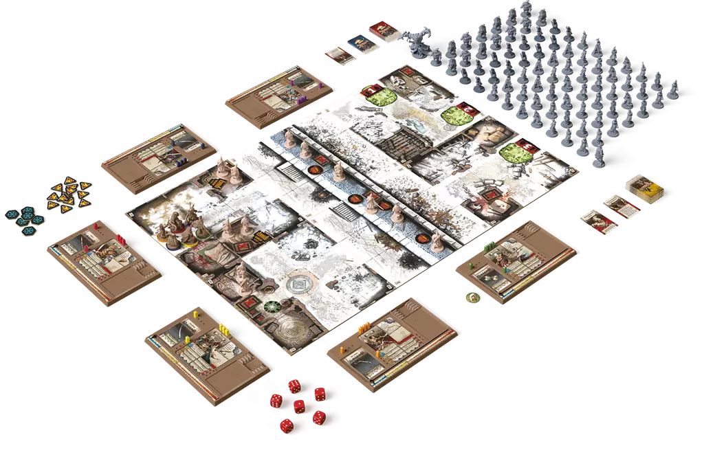 Chaque joueur dirige 1 à 6 survivants dans une cité fantastique assiégée par les morts-vivants. Une fois la Quête mise en place, le but est simple : remplir les objectifs, survivre et tuer autant de zombies que possible ! Les zombies sont lents et prévisibles, mais ils sont très nombreux. Gardez un œil sur les Abominations et les Nécromanciens, leurs « boss » ! Les héros utilisent tout ce qui leur tombe sous la main pour massacrer les morts-vivants. Plus leurs armes sont efficaces, plus ils font de victimes et plus le carnage attire de nouveaux zombies ! Les survivants peuvent échanger de l’équipement et les joueurs peuvent discuter des tactiques à mettre en œuvre.