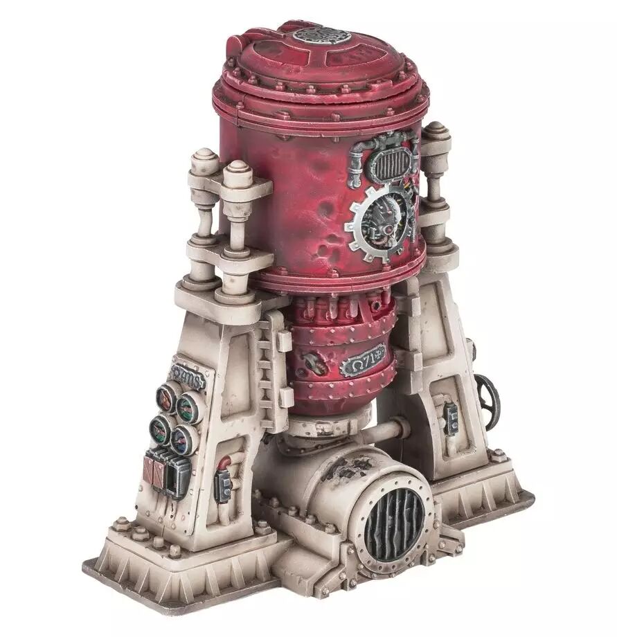 L'Autel Thermoéchangeur mesure 135mm de haut et inclut des détails intéressants, ainsi que des indices sur son utilité, comme le volant de commande manuelle, le réservoir lourdement endommagé et les jauges de pression.